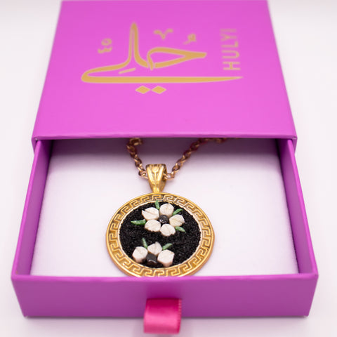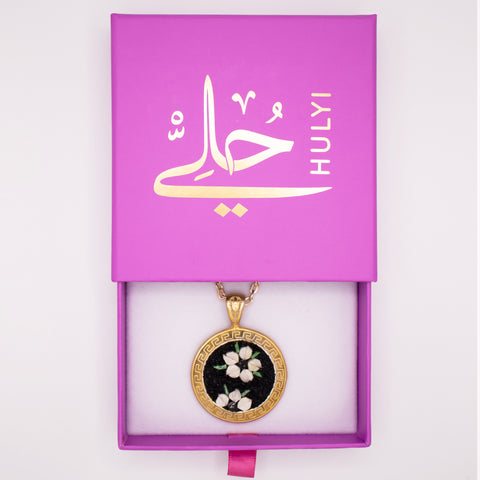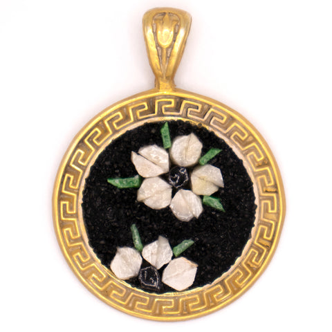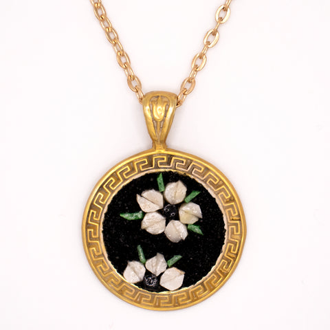 Exude glamor with a wardrobe as sophisticated as you. Available in 18-karat gold-plated sterling silver, this unique mosaic necklace features a hand-cut magnolia design atop a dramatic black background. You're...