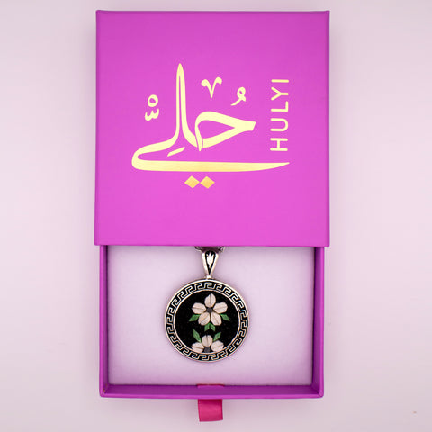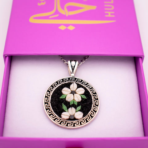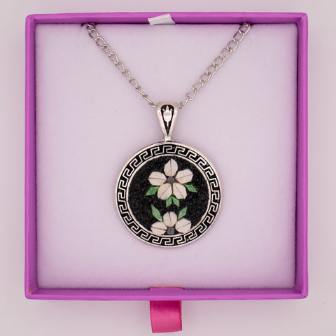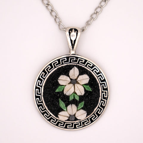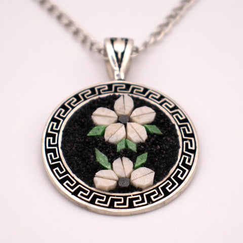 925 Sterling Silver Black Magnolia Mosaic Necklace